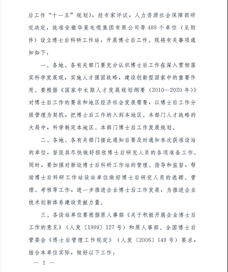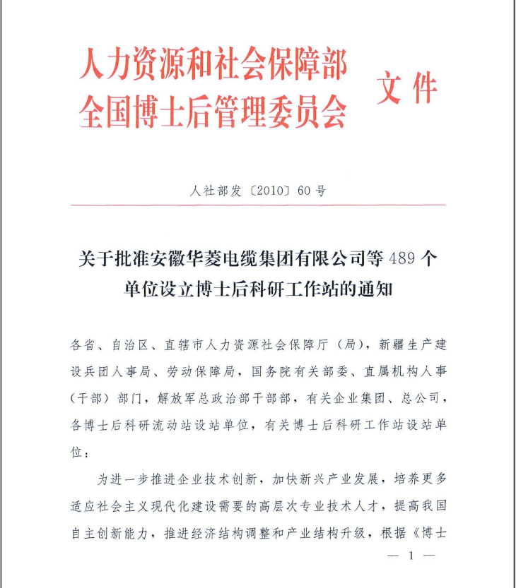 2010.08华联电子获批设立“博士后科研工作站”